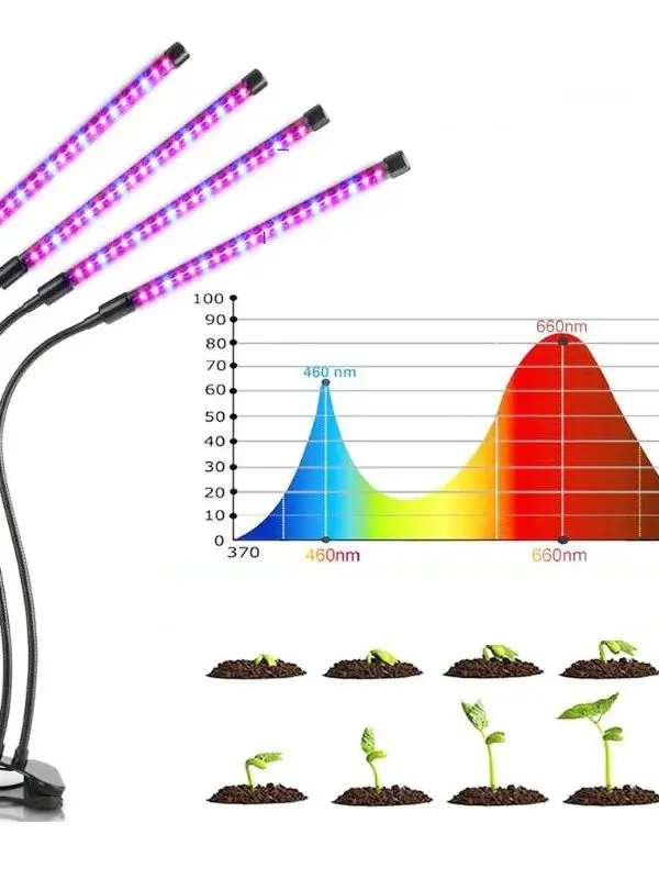 Depending on your choice, the grow light comes with 1 to 4 adjustable heads, allowing you to cover more plants at once.
